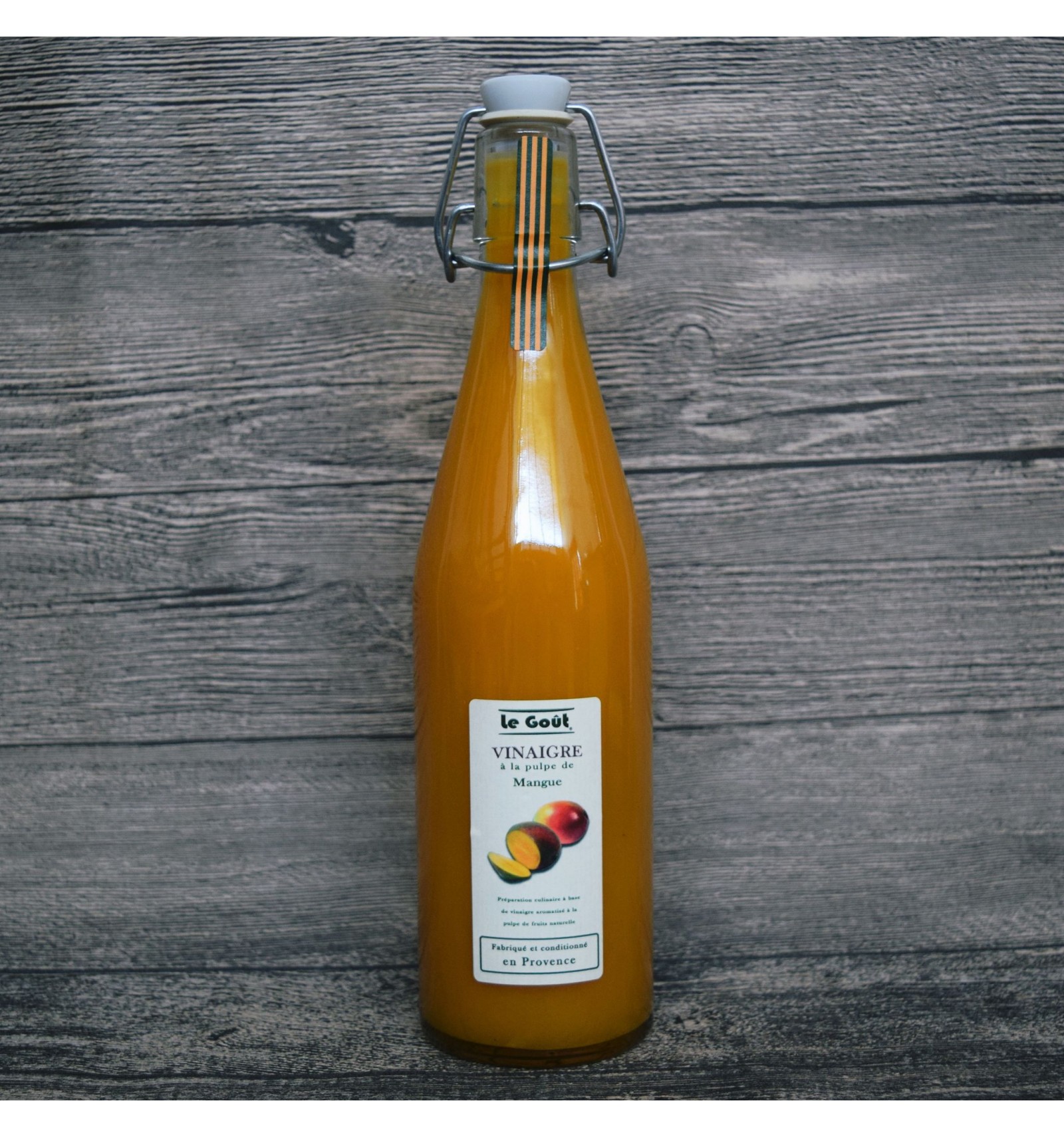 Ce vinaigre de mangue est idéal pour des vinaigrettes exotiques ou pour vos marinades ainsi que des cuissons à la plancha des crustacés, poissons, magret de canard.